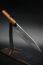 Forged Apex Ultra Gyuto with Micarta handle and frontcap. Midweight Grind and stone ready.